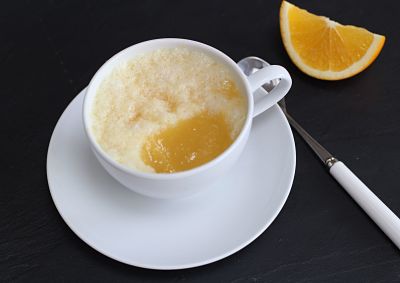 In a separate bowl whisk the egg whites to a froth and fold into the orange mixture gently – they will form a white fluffy layer on top.