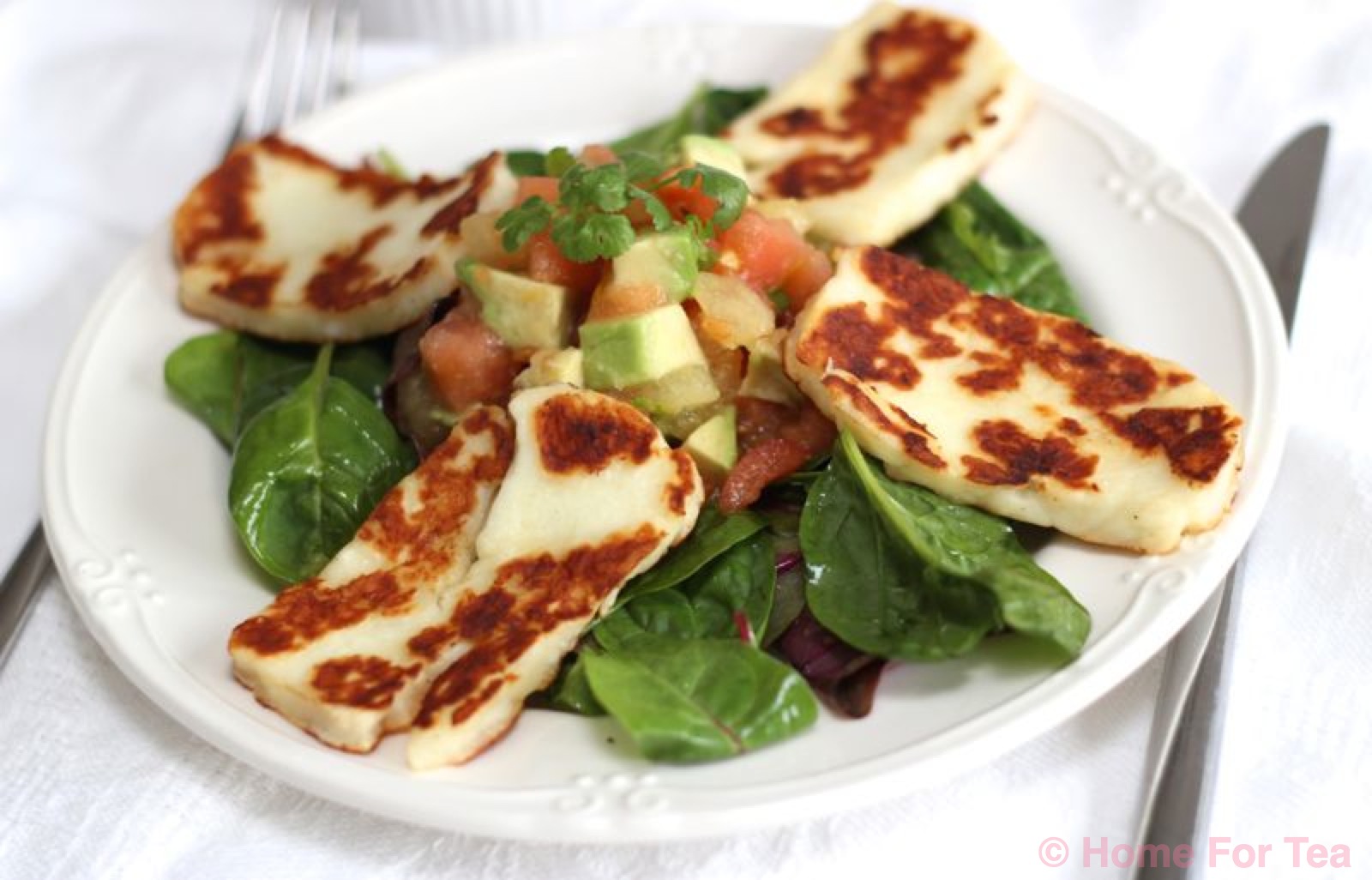 Halloumi salad with avocado salsa